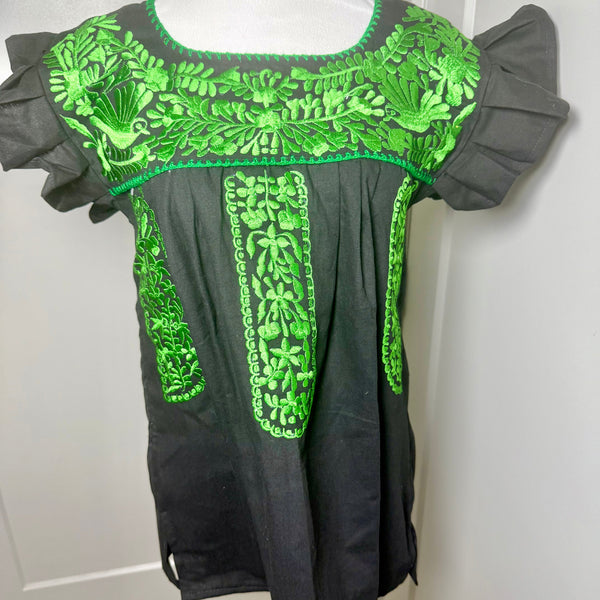 The Feliz Puebla Blouse - an embroidered masterpiece from skilled artisans in Puebla, Mexico. Perfect with jeans or shorts, this lightweight blouse adds a touch of unique style to any outfit. Made with love and expert craftsmanship, it's the perfect addition to your wardrobe!