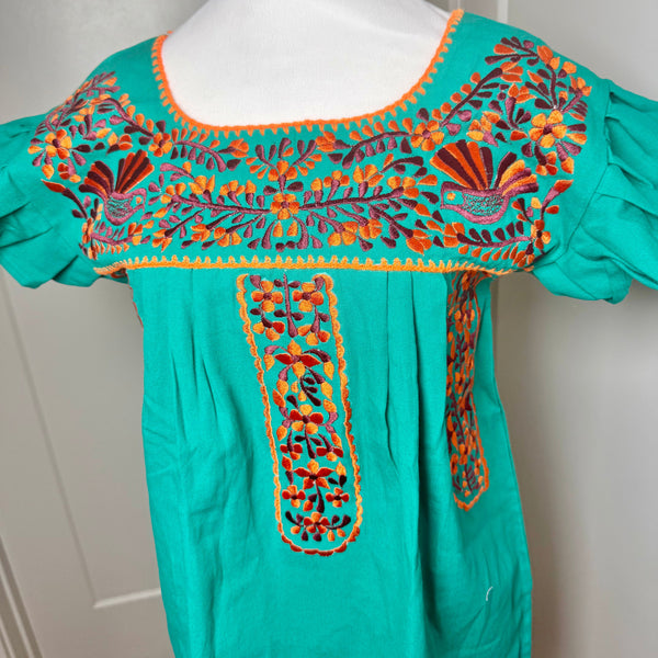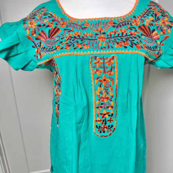 The Feliz Puebla Blouse - an embroidered masterpiece from skilled artisans in Puebla, Mexico. Perfect with jeans or shorts, this lightweight blouse adds a touch of unique style to any outfit. Made with love and expert craftsmanship, it's the perfect addition to your wardrobe!