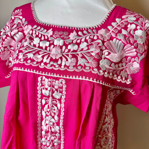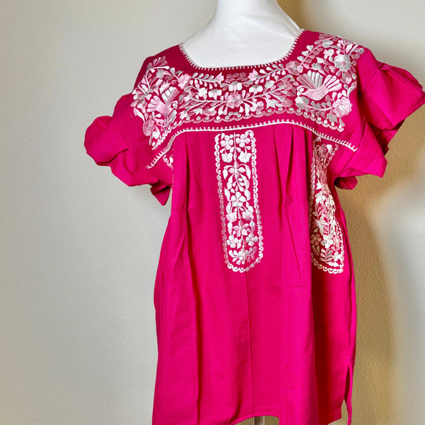 FELIZ PUEBLA BLOUSE - FUSCHIA WITH PINK & WHITE EMBROIDERY