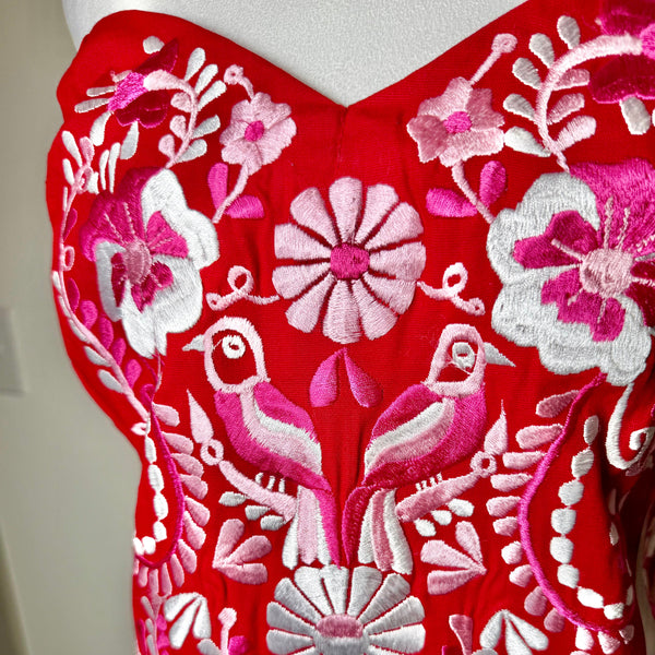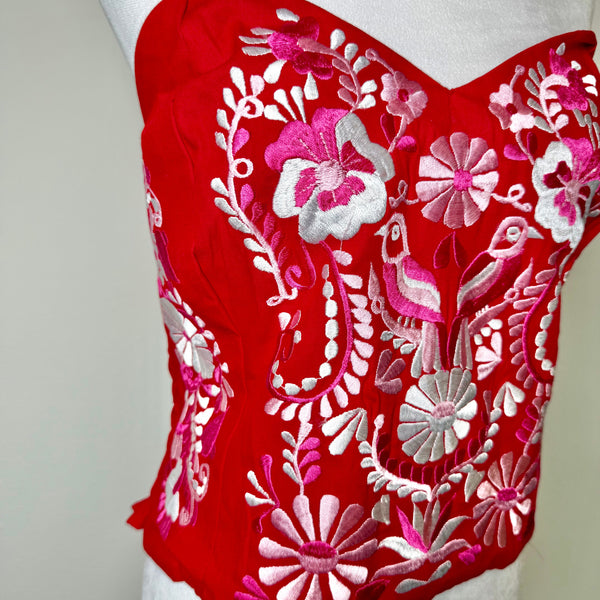 PUEBLA BUSTIER -RED WITH PINK & WHITE BIRDS - XL/XXL