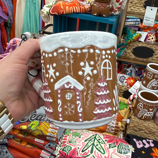 TALAVERA GINGERBREAD HOUSE MUG - PINK CHRISTMAS TREE